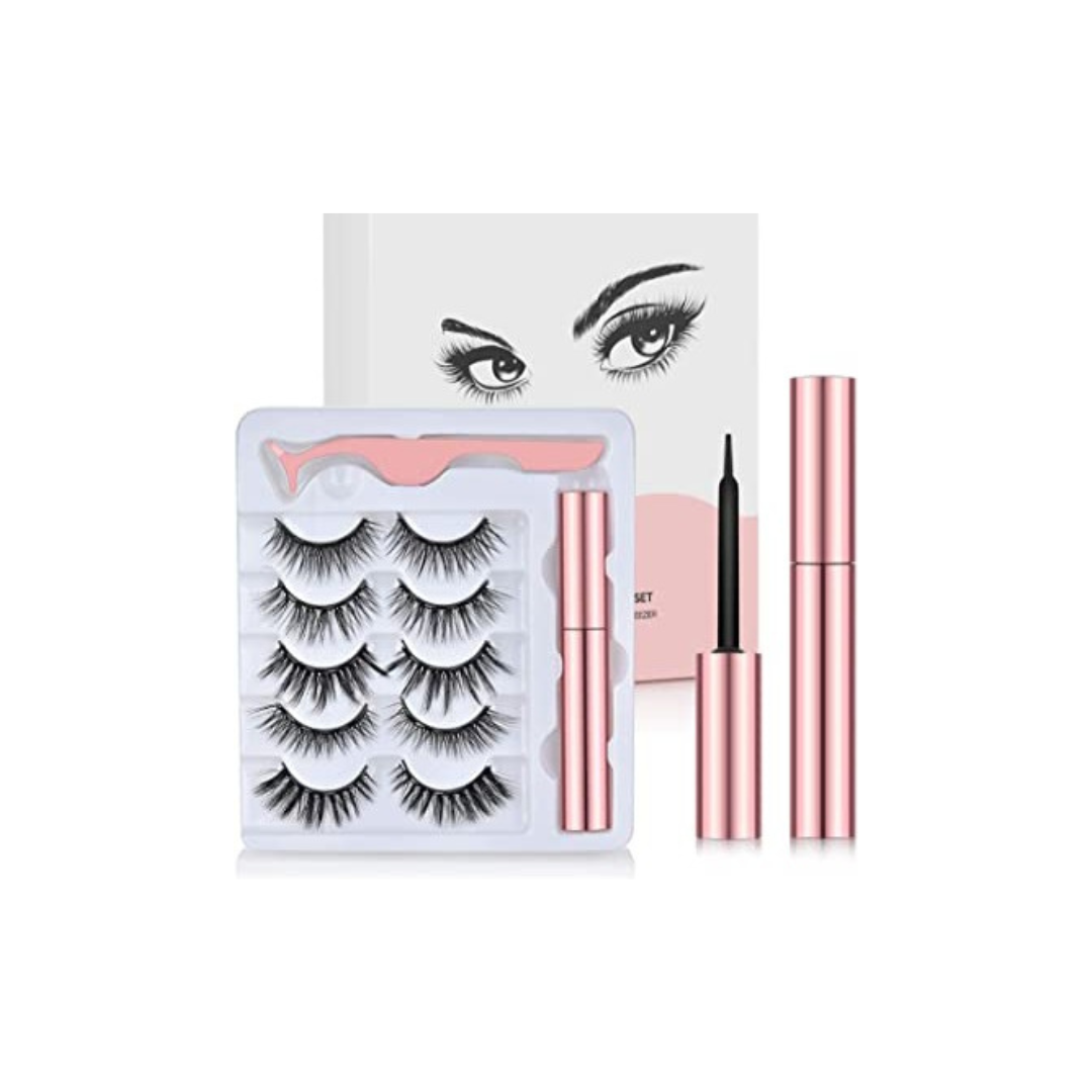 Our Eyeliner has ultra-fine magnetic particles inside so that the lashes can easily attach and stay on. Each Eyelash has 5 tiny magnets, giving high attachment to application. Natural looking Lashes, glue- free, lightweight and long lasting.